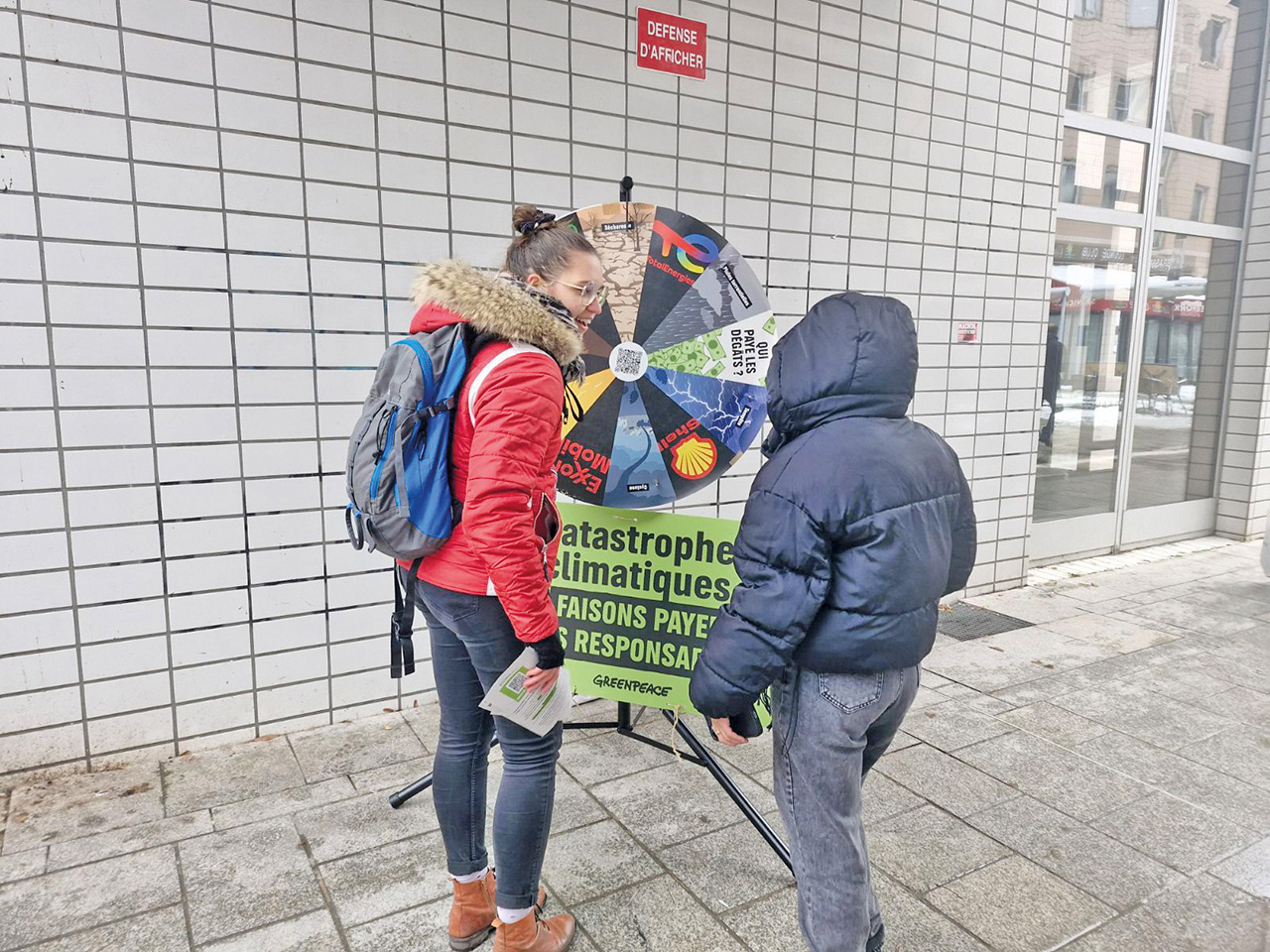 Les militants de Greenpeace Versailles (qui compte une cinquantaine de membres) se sont mobilisés à la gare de Saint-Quentin-en-Yvelines, à Montigny-le-Bretonneux, le samedi 23 novembre, de 10 h à 16 h. Le but : sensibiliser les voyageurs et les personnes rencontrés sur les conséquences du réchauffement climatique et les coûts que les catastrophes climatiques provoquent.