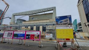 La 1re étape du chantier consistait à détruire entièrement le grand parvis de 600 m² et à en reconstruire toutes les fondations et toute la structure. « Ça a pris pas mal de temps, c’était vraiment un gros chantier, admet le directeur. La dalle a été coulée cet été. Sous la dalle, il y a toutes les nouvelles poutres, tous les passages de réseaux… Donc ça, ça s’est terminé au beau milieu de l’été. » Désormais, se déroule actuellement « un ‘‘jeu de construction, de Lego’’, puisqu’ils sont en train de construire toute la structure, les ‘‘boîtes’’ qu’il va y avoir à l’intérieur, qui contiendront la cuisine, les réserves d’un côté, et les toilettes et les réserves de l’autre, poursuit-il. Et ils sont également en train de construire la charpente. […] Donc ça avance très vite, et surtout, ça se voit, alors qu’avant, ça ne se voyait pas. »